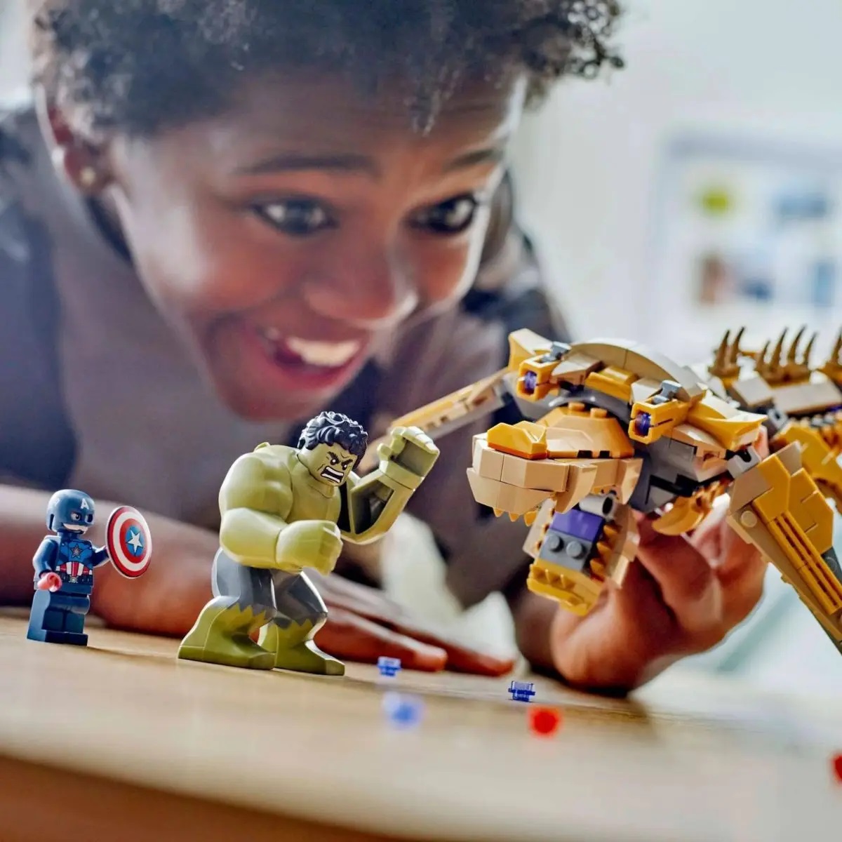 O conjunto inclui 4 minifiguras: o Capitão América com seu escudo, a Viúva Negra com um disparador de pinos, o Loki com sua capa e capacete e um guerreiro Chitauri com uma pistola de laser, além de uma figura grande do Hulk.