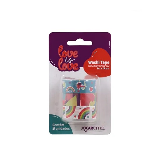 WASHI TAPE LOVE IS LOVE ARCO IRIS 15MMX3M 3 UND JOCAR OFFICE